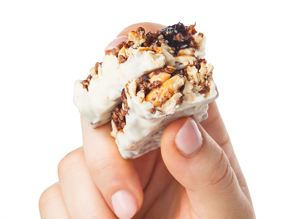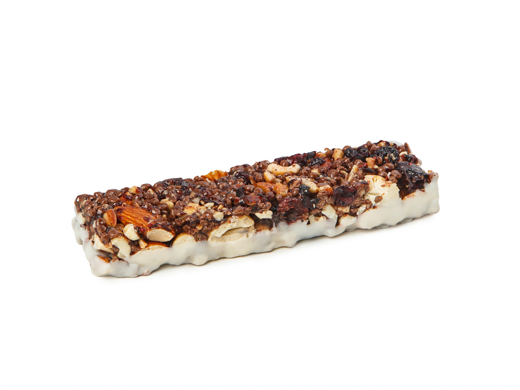 If you take a handful of cashews with its creamy taste and add fresh almonds, a handful of juicy cranberries with its slight sourness and cover it all over with a thin layer of white icing… You wiil still have no idea what our new Cashew & Cranberry Nut Bar tastes like.