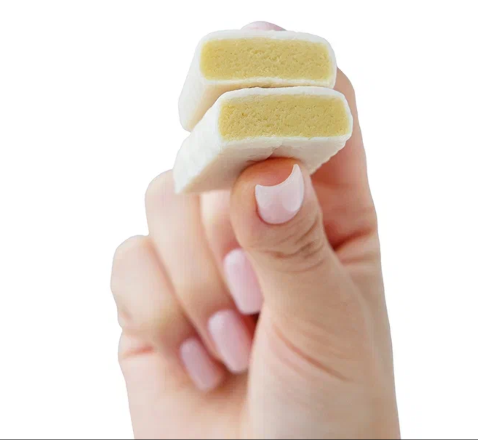 Ingredients: Protein complex (collagen hydrolysate, milk protein concentrate, whey protein concentrate); isomaltooligosaccharides (prebiotic); vegetable oil; skimmed milk powder; isomalt sweetener; drinking water; humectant glycerin; salt; plant extract of guarana; natural flavors; antioxidant ascorbic acid; colorants: turmeric, beta-carotene; emulsifiers: soy lecithin, sunflower lecithin, mono- and diglycerides of fatty acids.